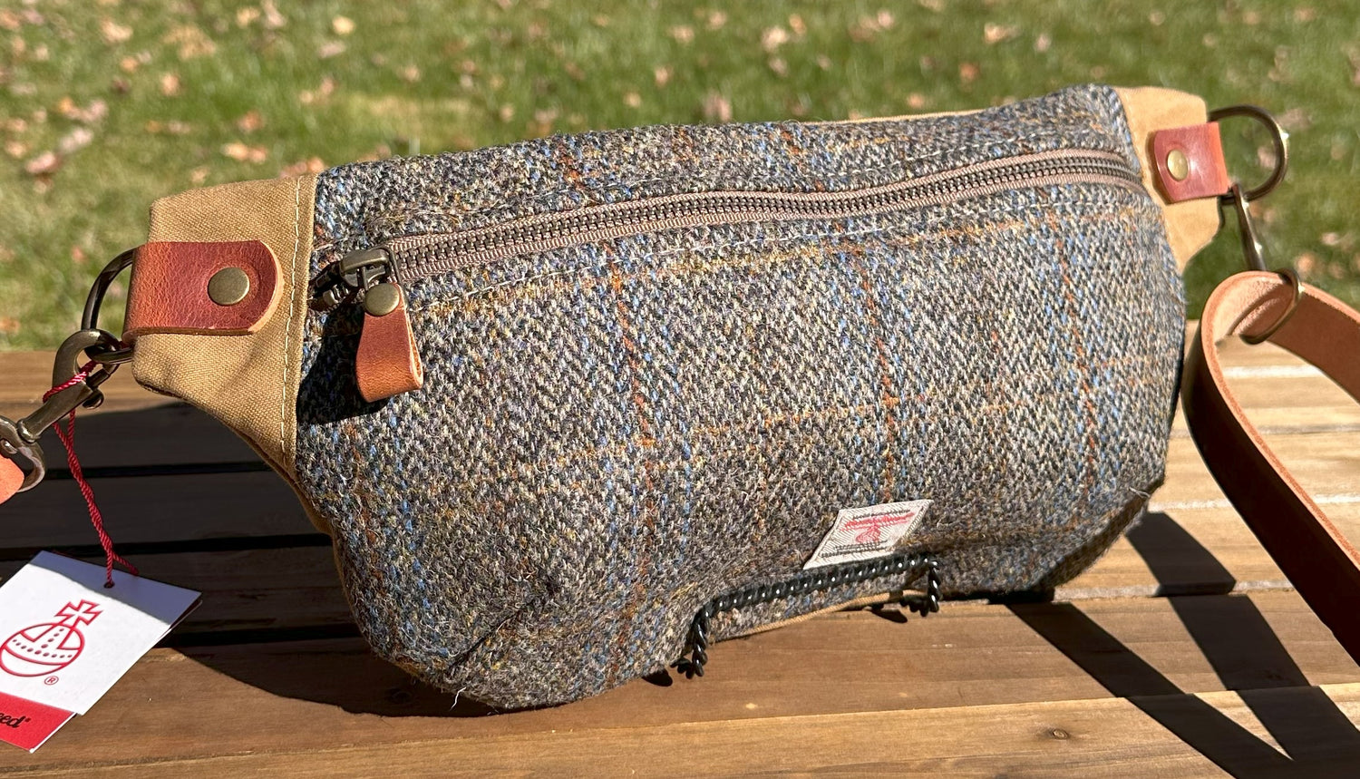 My Harris Tweed® collection is built from my current designs with the addition of these beautiful and exquisitely crafted Harris Tweed® patterns. My hope is to bring out the natural beauty of the materials of waxed canvas, leather and the Harris Tweed® and evoke a timeless and classic feel in each of these products. Having registered with the Harris Tweed® Authority, I am able to source my Harris Tweed® directly from two mills in Scotland, Kenneth Mackenzie Ltd & Harris Tweed Hebrides.