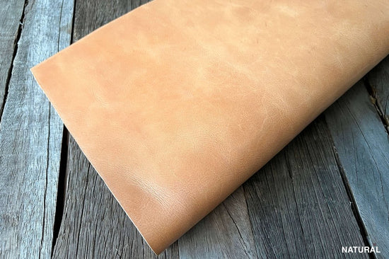 The natural vegetable tanned leather is not dyed to allow the leather to naturally patina over time and with use. Our Natural leather will age to a caramel color and burnish to a rich patina.