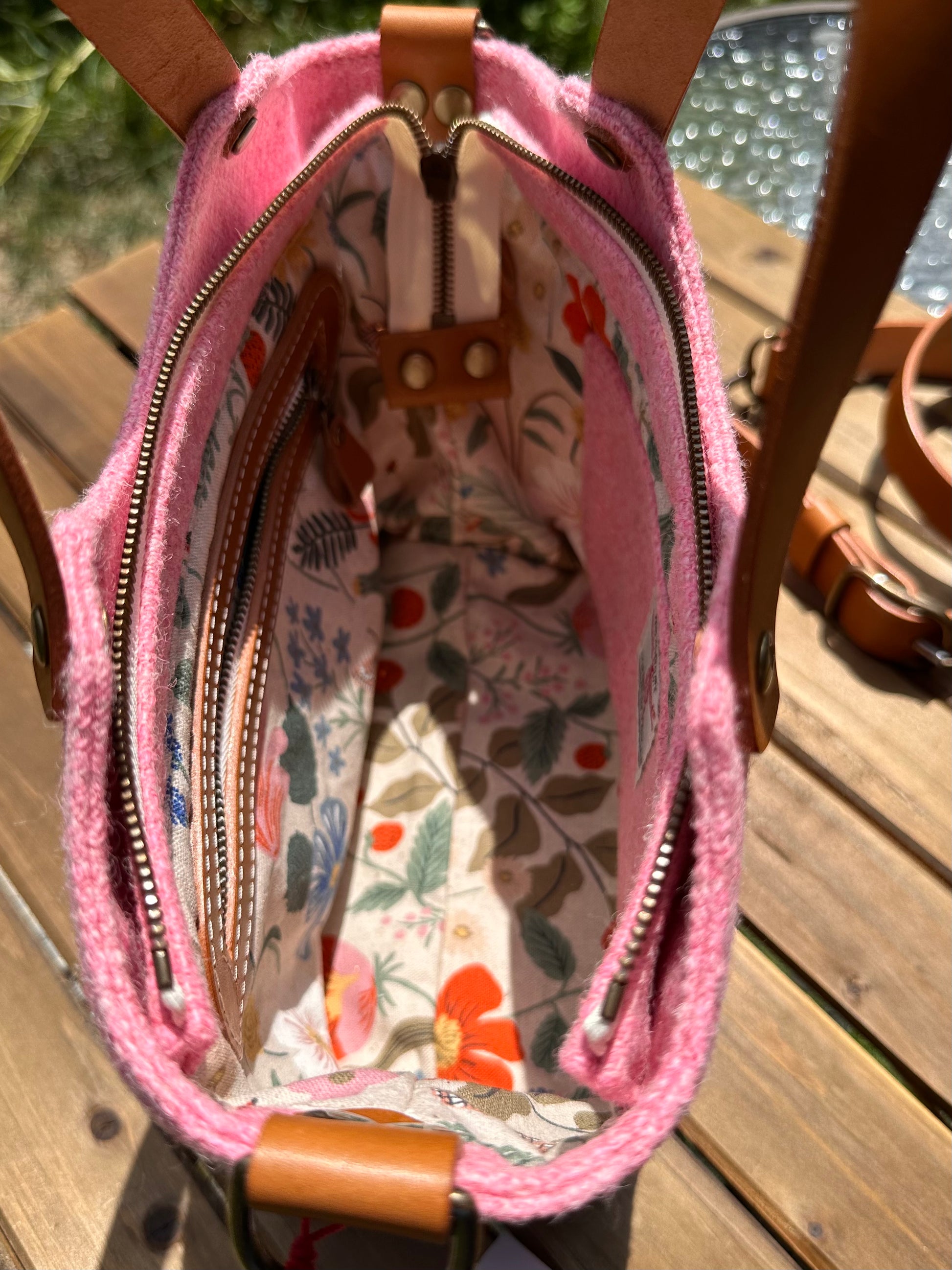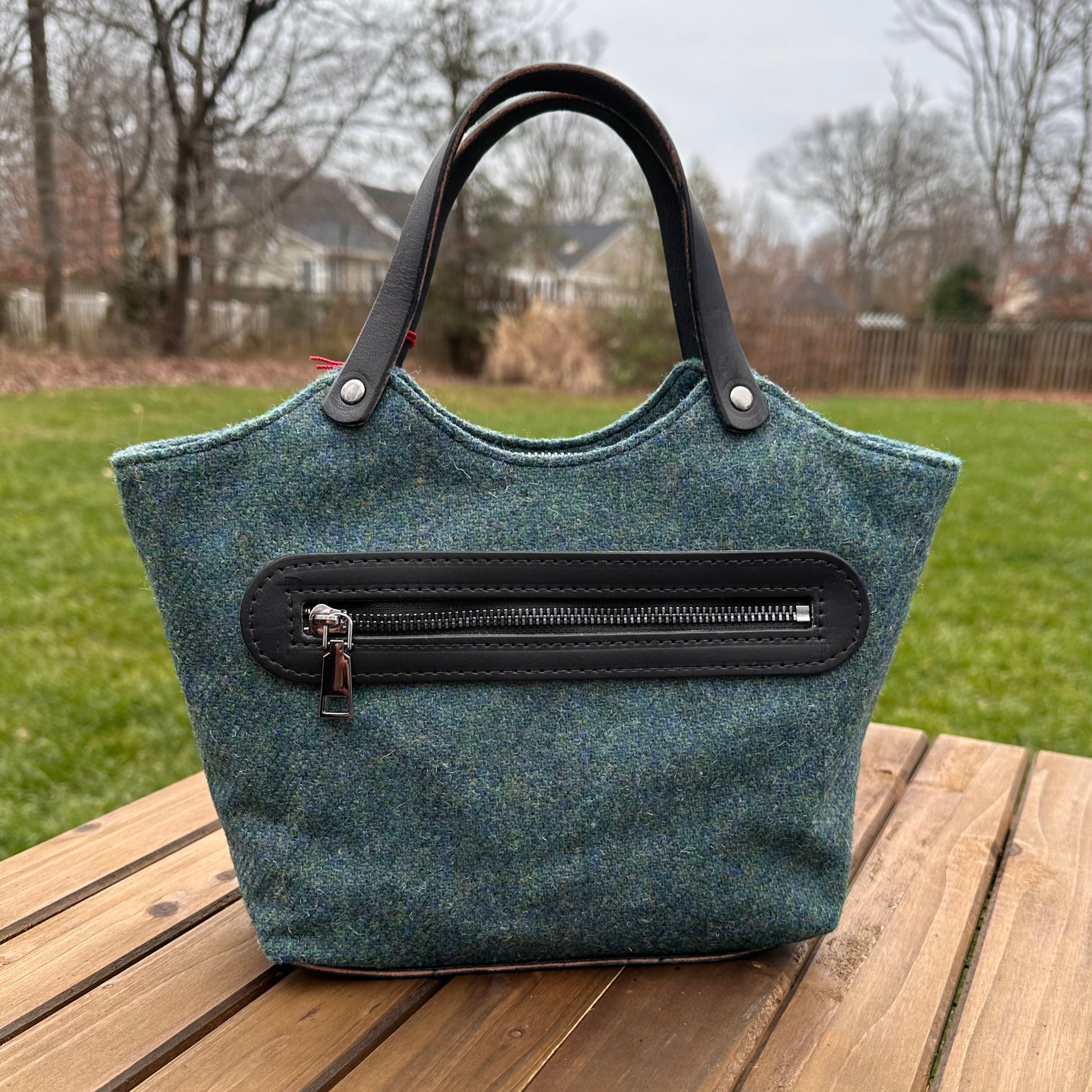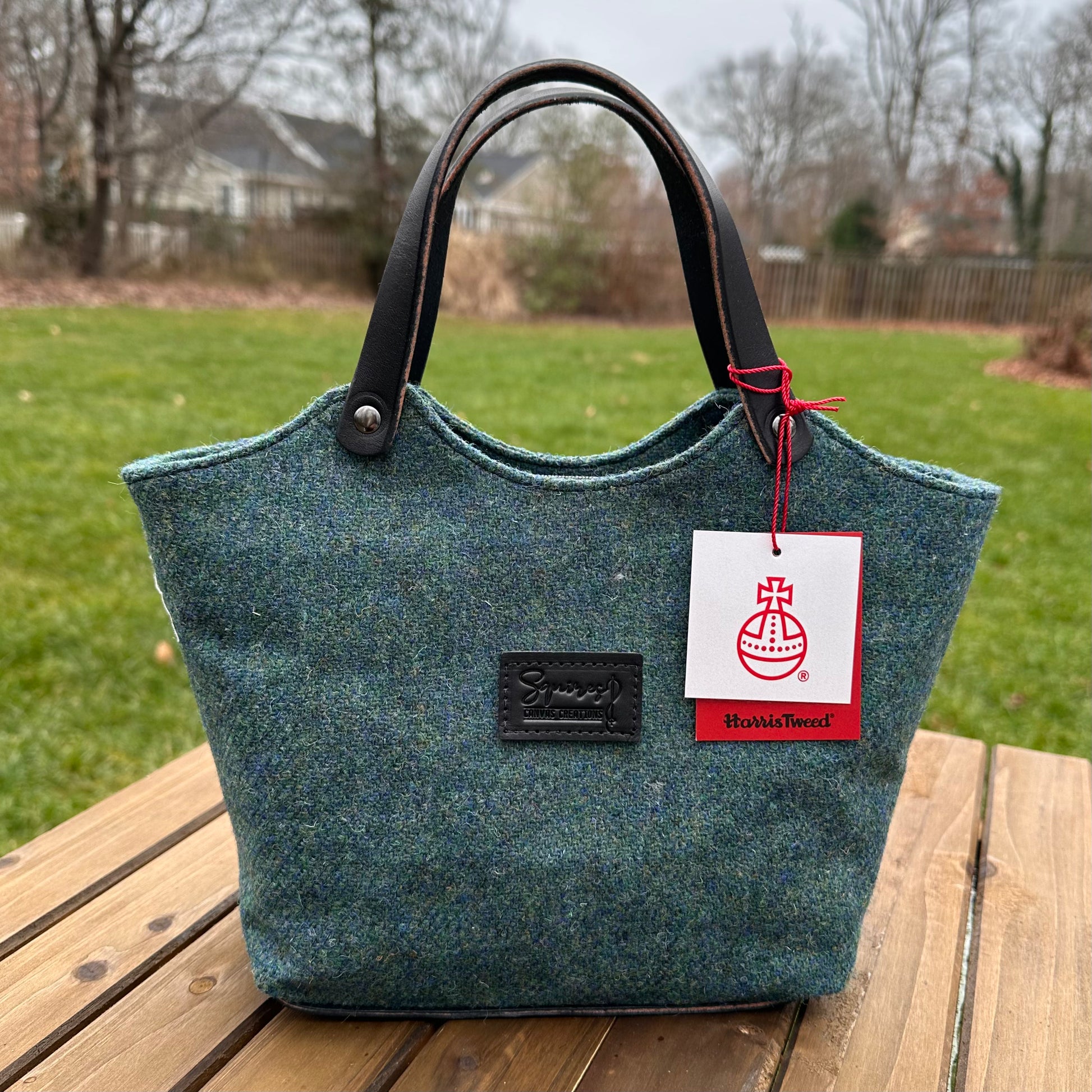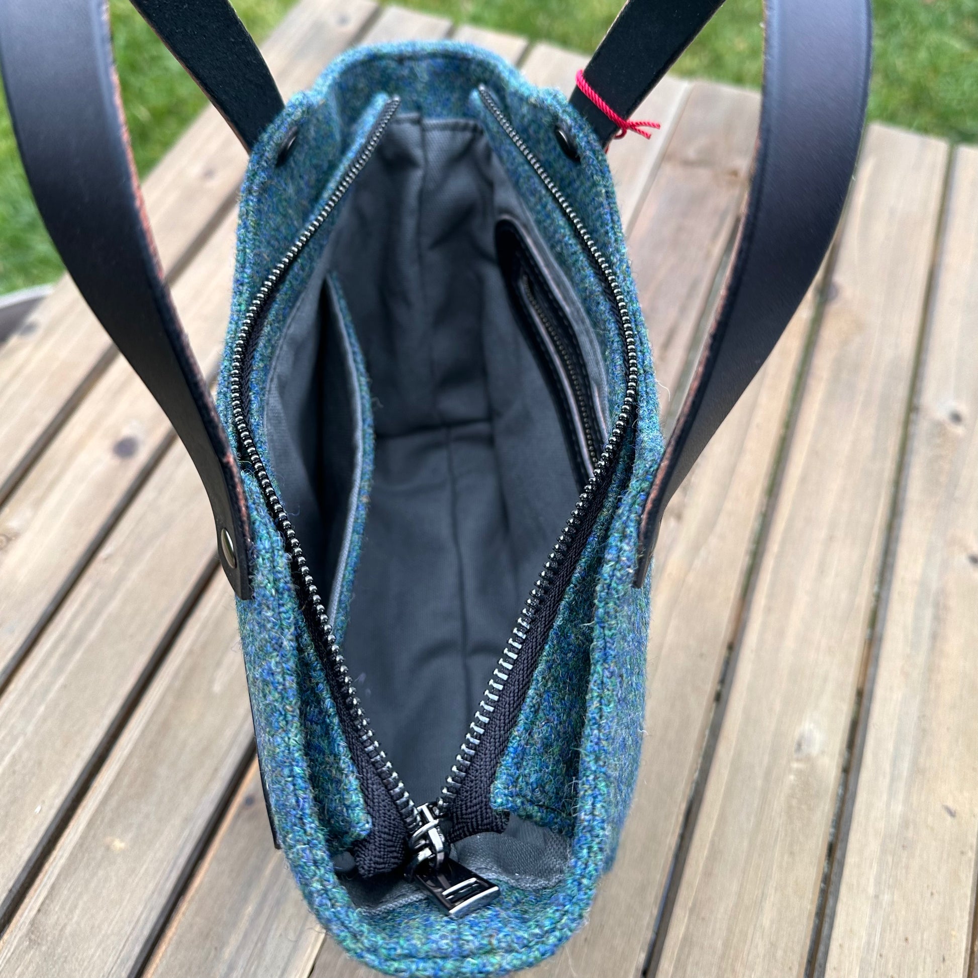 The Mazie Handbag features an exterior crafted from luxurious Harris Tweed®, renowned for its heritage, quality, and timeless appeal. Each handbag is complemented by Full Grain 'Valdibrana' Italian Vachetta leather and solid brass hardware, adding a touch of refined sophistication. The interior lining options include high-quality canvas or linen, providing both durability and a soft, luxurious feel.