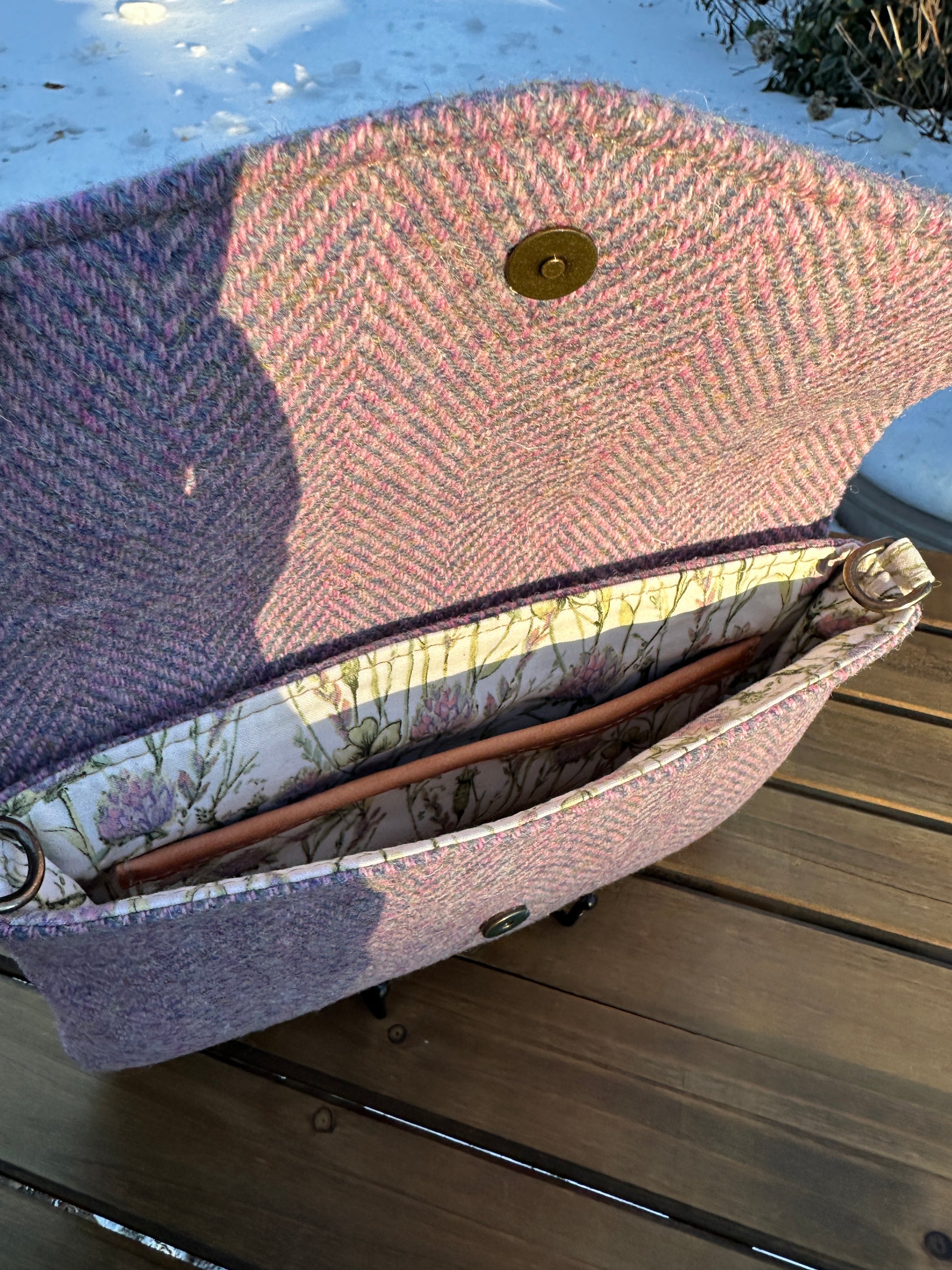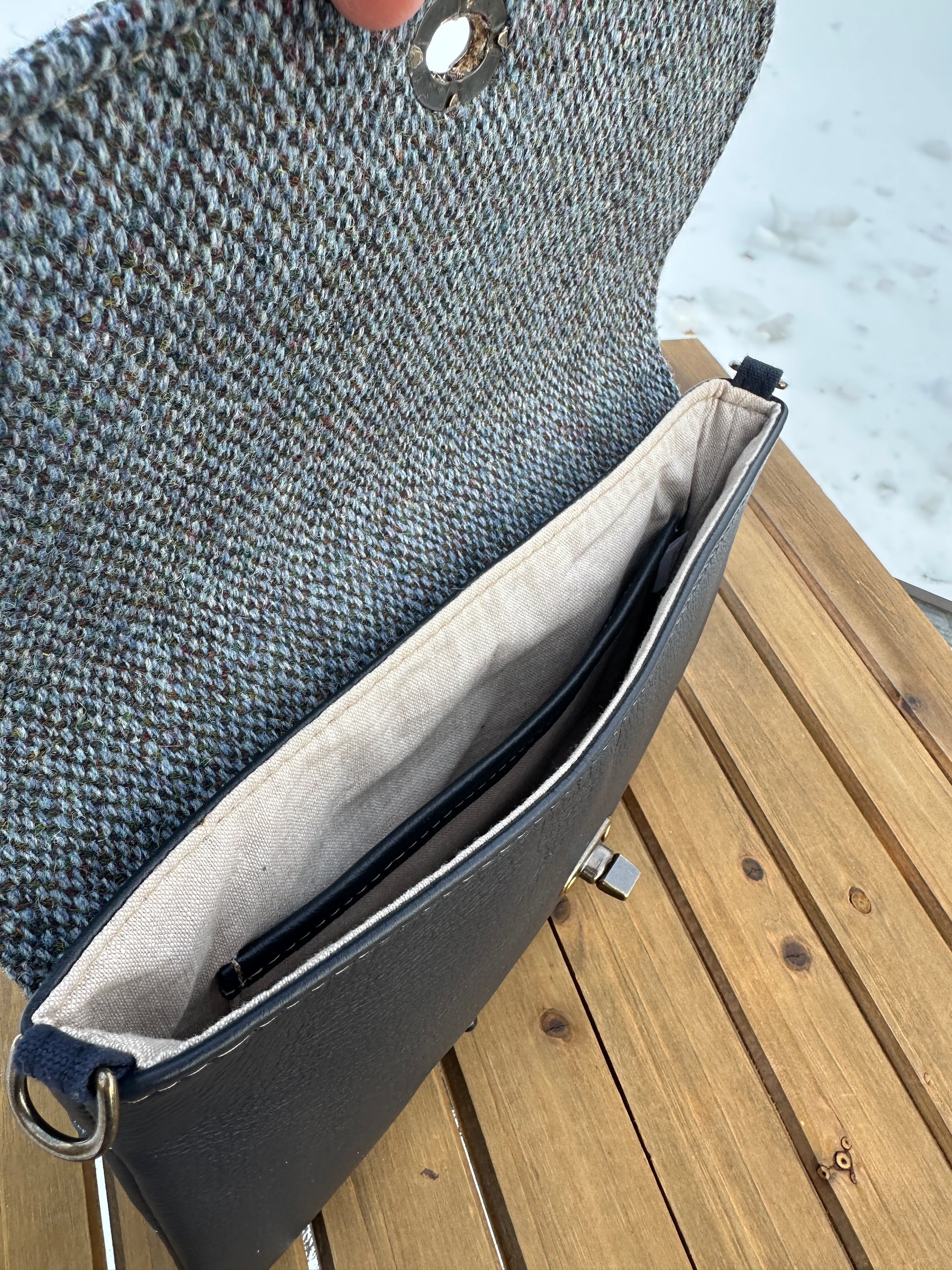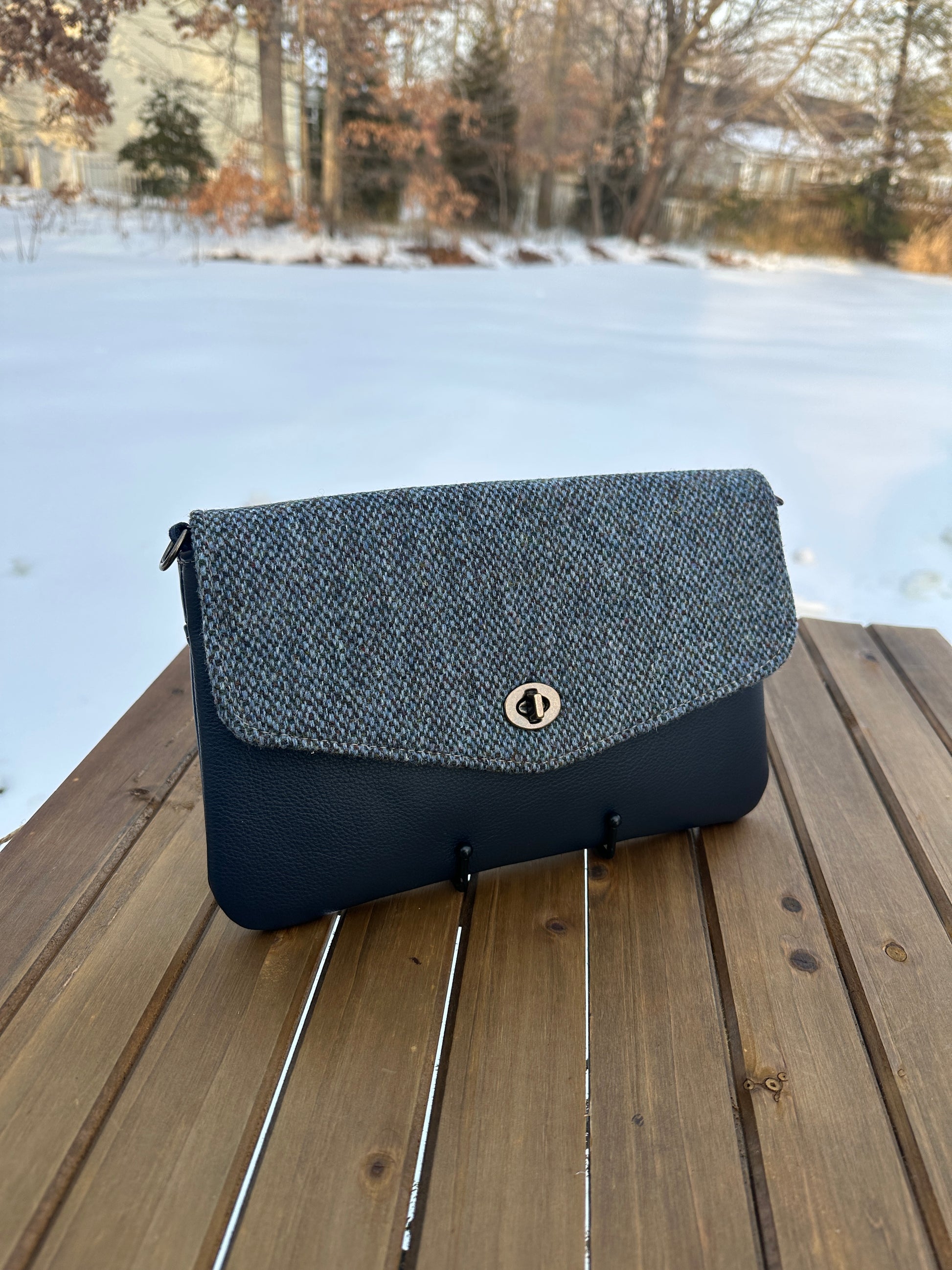 Inspired by the clean lines of a timeless envelope clutch, the Skye Fold blends structure and softness into a silhouette that feels effortlessly elegant. The sleek leather body is paired with a beautifully tailored flap of authentic Harris Tweed®, creating a refined contrast of texture and heritage craftsmanship that never goes out of style.